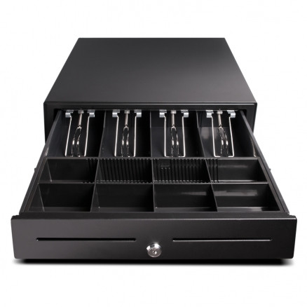 Tartós fémburkolattal ellátott kasszafiók, masszív műanyag belsővel. A kasszafiók alján található vésznyitó kar segítségel is nyitható. A műanyag kasszabelső minden eleme eltávolítható; kivehető a variálható aprópénztartó és a papírpénz tároló rekesz is. Trezor funkciójának köszönhetően a nagycímletű bankjegyek gyorsan és biztonságosan helyezhetőek el benne.